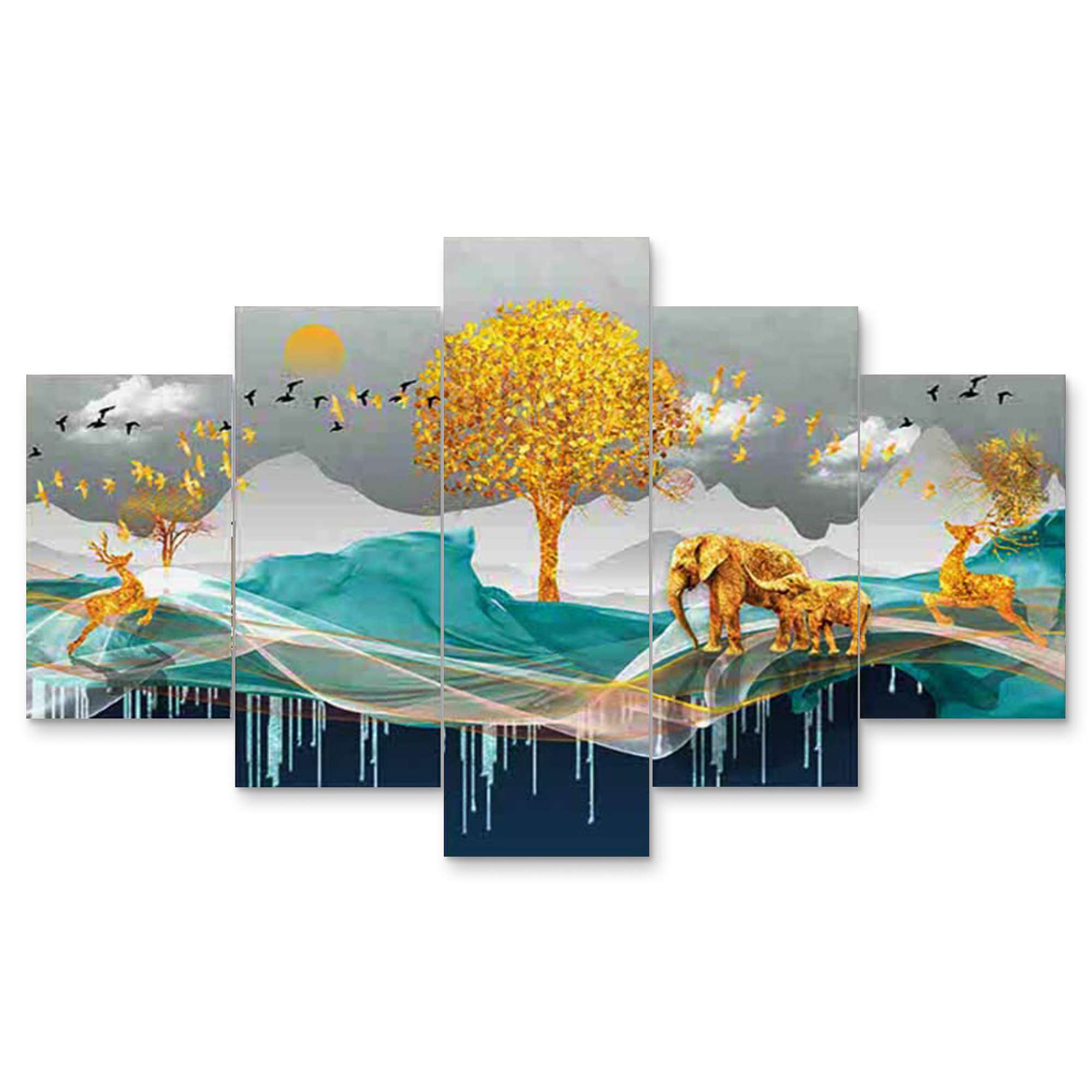 Nature Set of Five 3D Framed Paintings for Wall Decoration – Ideal for Home, Living Room, and Bedroom (125 x 60 CM)
